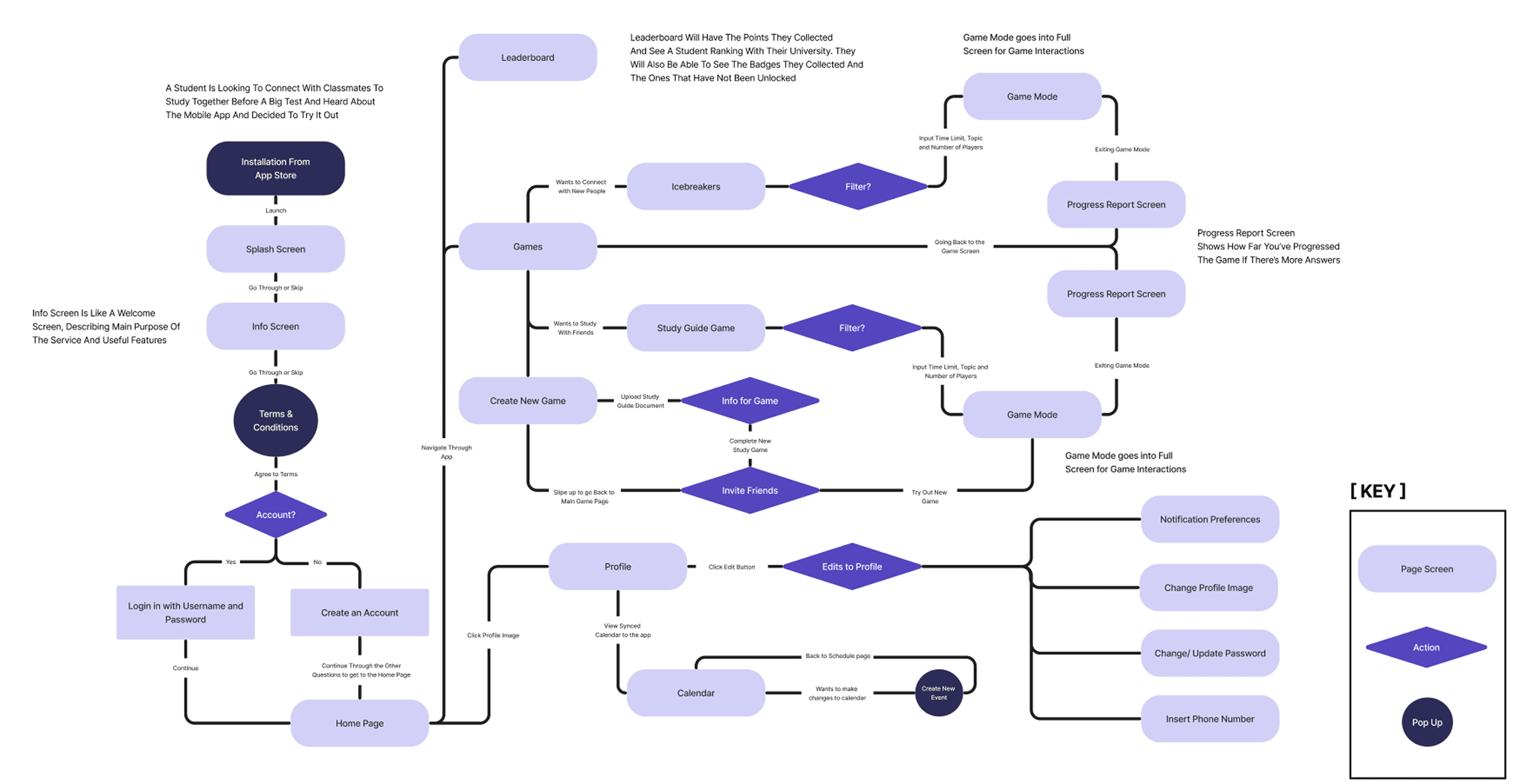 We added features such as games, points, online status, topics of interest, and a calendar. This will help students make in-person studying easier and more engaging.